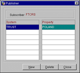 Example: Publisher setup for FTCRS to receive TRUST interface Reservation information only.