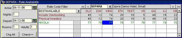 - If the parameter Best Available Rate YN is activated (Y) in General Availability, only the Best BAR rate code is displayed.
